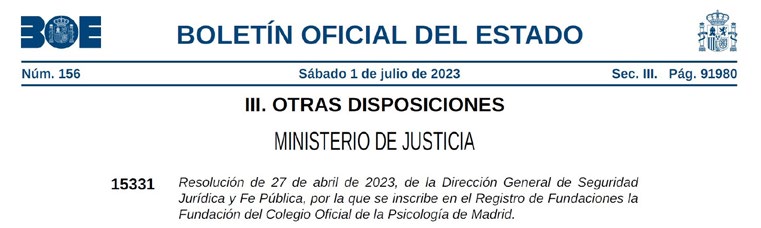 ComunicaciónEl BOE publica el Registro Oficial de la Fundación del Colegio Oficial de la Psicología de Madrid