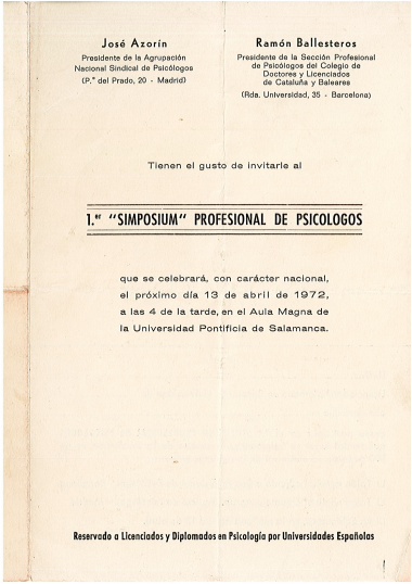 ComunicaciónSección Archivo histórico del COPM. Primer "Simposium" profesional de Psicólogos
