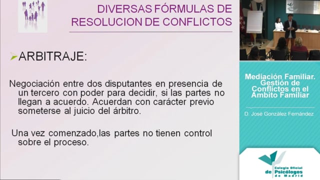 01. Mediación Familiar. Gestión de conflictos en el ámbito familiar. D. José González Fernández.